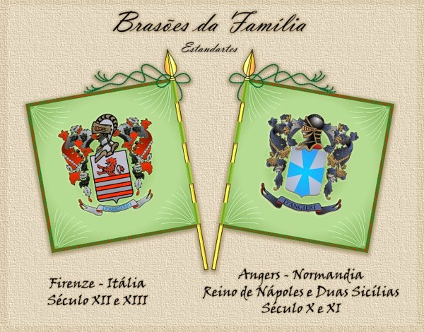 As pesquisas heráldicas nos trazem duas Armas ou Brasões, uma Angiolina, ou seja, de origem Normanda do Condado de Anjou que remonta ao século XI provavelmente e coletada pelo Instituto Genealógico Italiano na década de sessenta; e outra Fiorentina, coletada junto a Biblioteca Nacional Central de Firenze, pelo Istituto Araldico Coccia, e remonta ao século XXIII de um ramo italiano já estabelecido naquela província. De qualquer forma, sabe-se que os Brasões de família surgiram nos séculos XI, XII e XIII época em que as Dinastias de Angers se estabeleceram no sul da Itália.